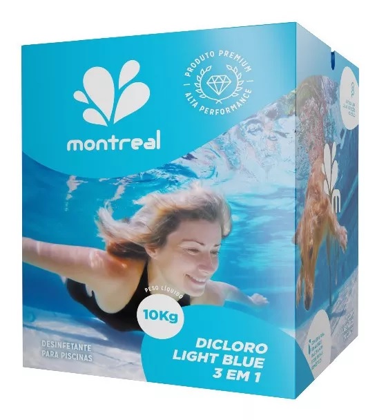 O Montreal Light Blue 3 em 1 é uma solução econômica para desinfecção e tratamento de água de piscinas que não contém insolúveis e não altera o pH da água. Além de eliminar as impurezas e microrganismos, previne contra a formação de algas e atua também como um poderoso oxidante. Quando dissolvido na água, o produto forma um estabilizador de cloro que impede a sua perda pela ação dos raios solares. Assim, a necessidade de uso do cloro torna-se menor, resultando em economia e prolongando a ação do cloro na água.